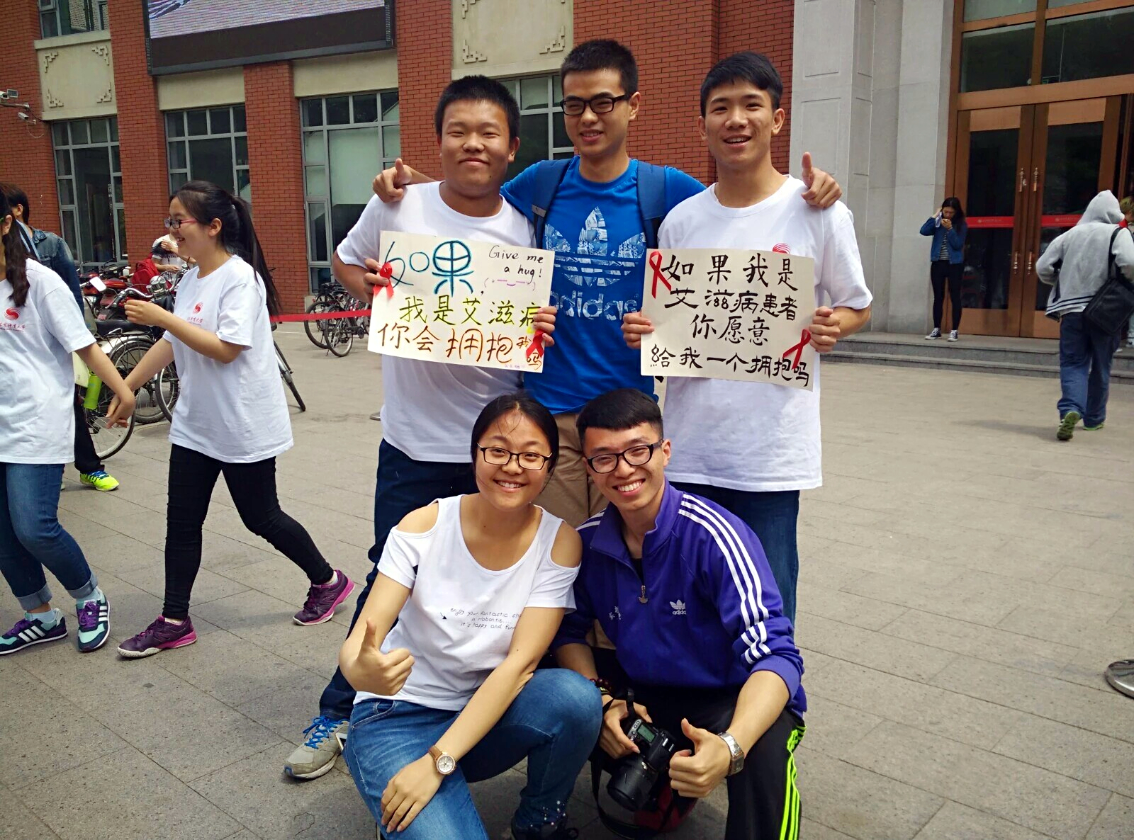 Free hugs是近几年同伴教育部发起的,呼吁校内师生关注艾滋、预防艾滋的反歧视活动,通过在校内招募志愿者扮演艾滋病患者与校内师生拥抱,呼吁大家关注并关爱艾滋病患者,传播人道主义思想。