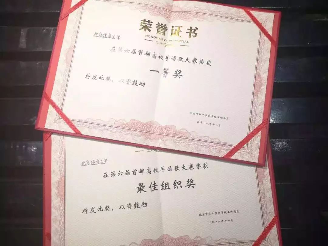 2018年11月24日,必威西汉姆联入口官网红十字会学生分会手语队前往北京林业大学参加第六届首都高校手语歌大赛决赛。不负两个多月日夜的辛苦排练,我校手语队在第六届首都高校手语歌大赛中荣夺桂冠,同时必威西汉姆联入口官网荣获最佳组织奖!