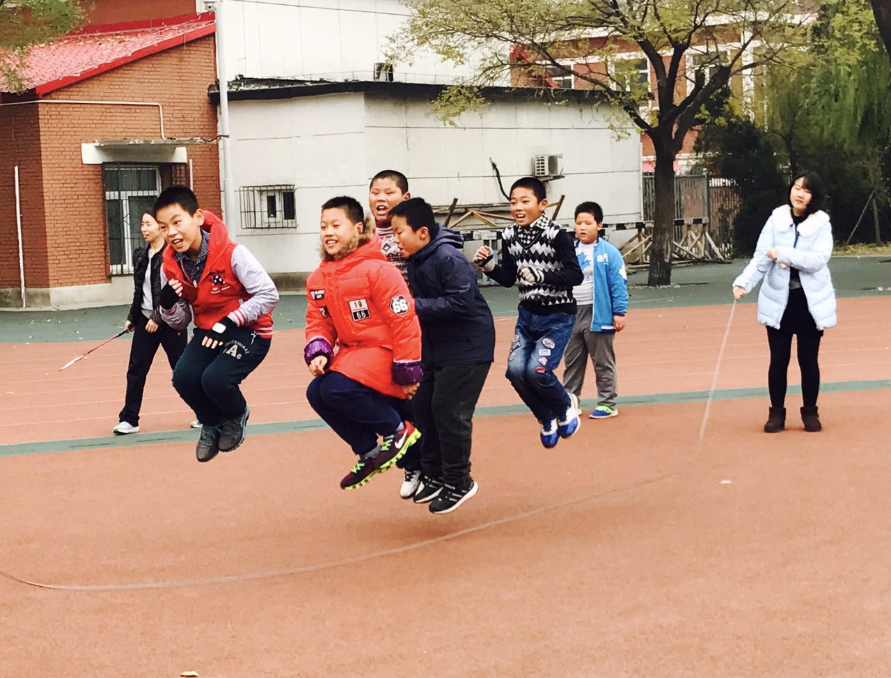下午一点,大家一起来到了东田径场,开始了今天的全民健身活动。大家先是纷纷拿起了各种器材,开始热身。接着跑来了一群可爱的小朋友,并加入了我们的健身队伍~接着是活动身体各部位的热身操。