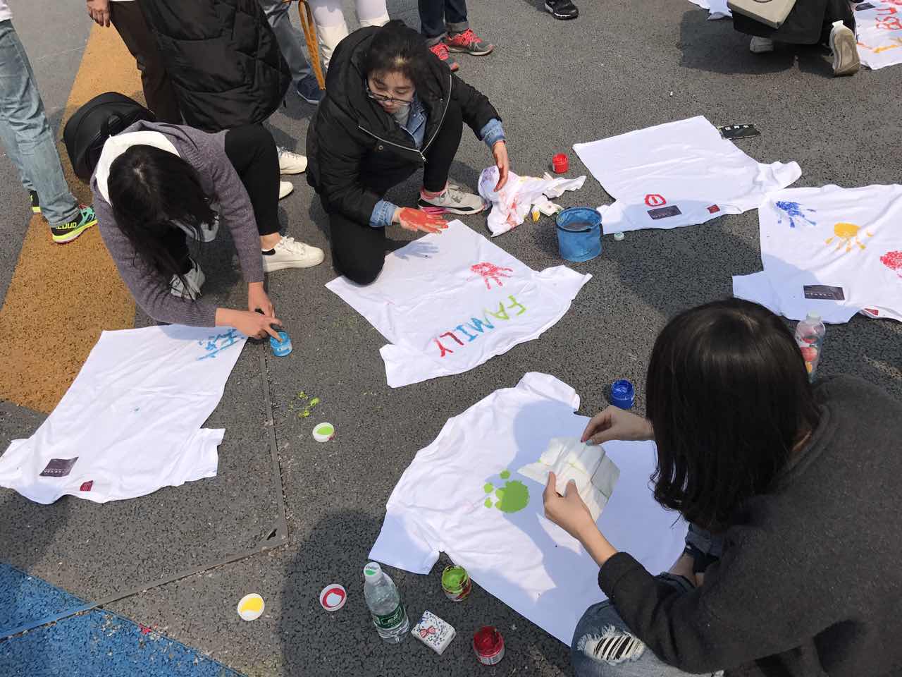 前六个任务完成后,每位同学都得到了一件白T恤以及各种颜色的颜料,并脑洞大开地开始进行艺术创作。