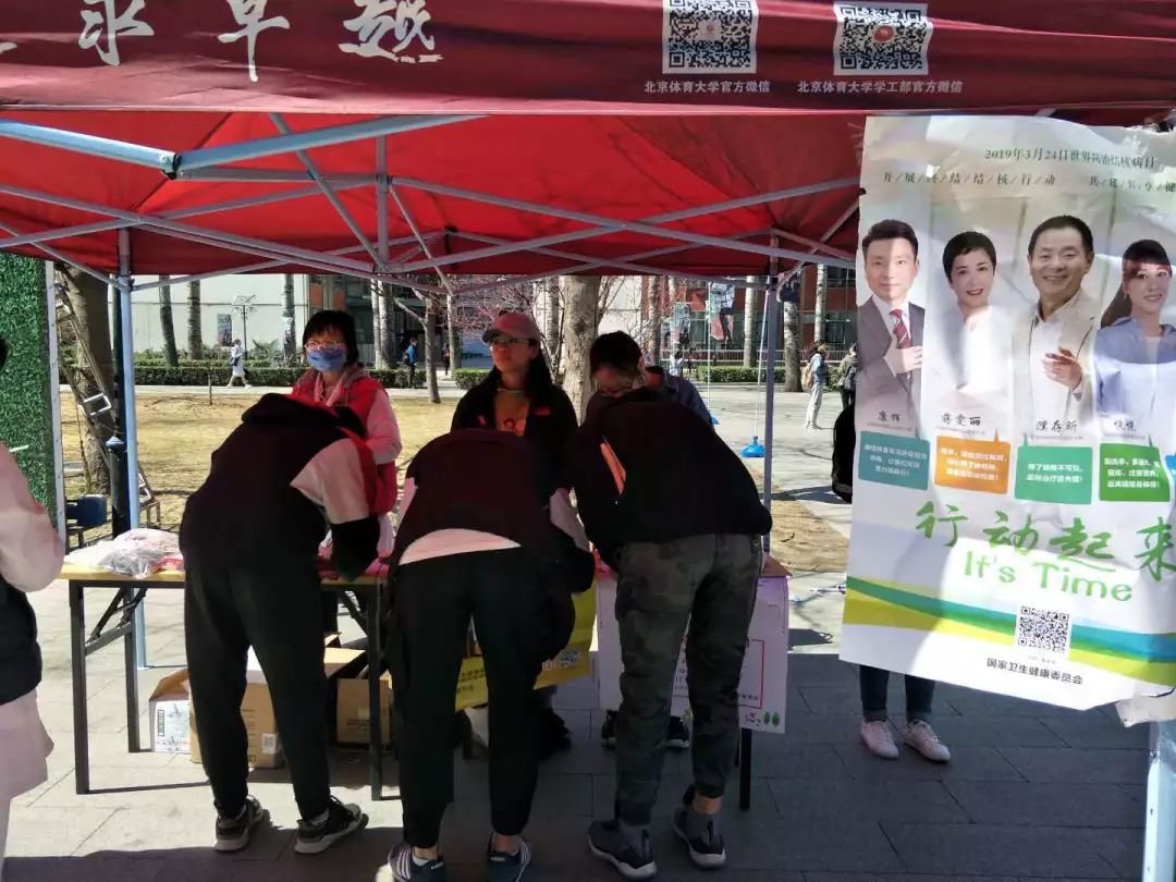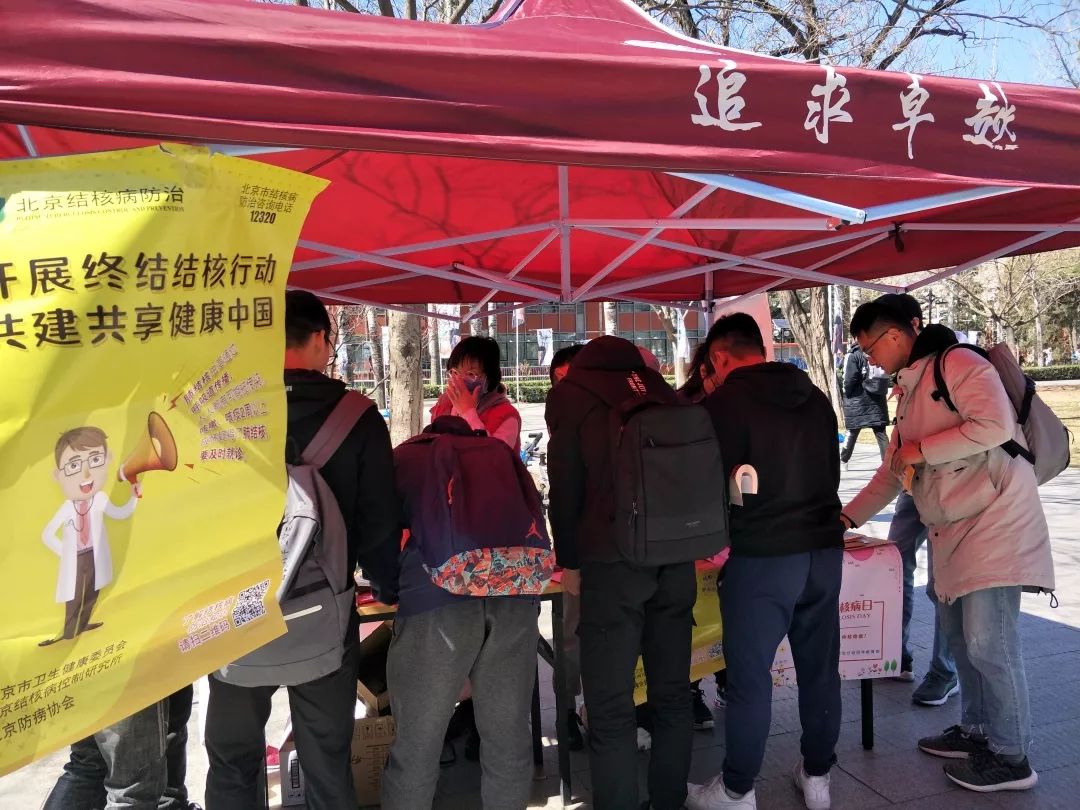 在世界防治结核病日到来之际,必威西汉姆联入口官网红十字会学生分会同伴教育部联合校医院于3月22日中午在食堂门口举行了“时不我待,行动起来,终结结核”的宣传活动。