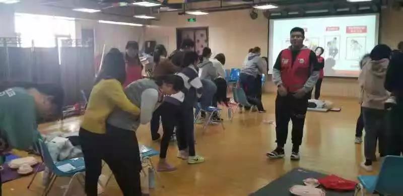 上午9时,红十字会的杨老师开始讲课。课程内容是针对心跳骤停患者进行的心肺复苏和人工呼吸。杨老师讲课风趣幽默,学员认真学习。