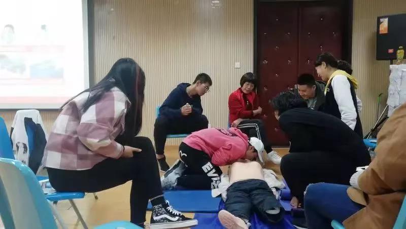 她先是介绍了红十字会的发展历史和概况,让同学们对红十字会有了更深入的了解。然后做了心肺复苏急救的理论指导。接着,由另外两位老师,陈老师和郝老师进行了具体操作展示。之后,四组同学在各自老师的帮助下模拟练习了心肺复苏和人工呼吸。