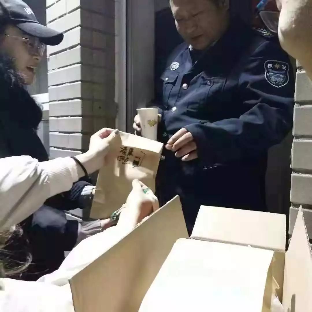 今天,我也体验了一下凌晨4点就起床的感觉,我以为我起早了,然而并没有,4点35的时候就已经有一个叔叔在教学楼背后清扫路上的树叶了,这位叔叔姓董,我们给了董叔叔一杯咖啡,还有一些面包和暖宝宝,走的时候叔叔也很友好的跟我们道再见并且表示感谢。后来,我们又去了西南门,在那里,还有值夜班的保安叔叔,两位叔叔很热情,我们聊了很久,叔叔告诉我们他们都是山西人,只有过年才能回一次家,而且得等到学生们放假以后他们才回家,听到这些,我感受到了他们对于家人的想念以及那种想迫切回家的渴望。 今天,我们一共遇到了六位守夜的叔叔,他们都是山西大同人,很多都是已经在这里工作了十几年了,他们的年龄都和我爸爸差不多,他们也都有自己的子女,可只能一年见一次面,为了家人,他们不得不坚守在这里,同时,他们也带给了我们很多的温暖。希望我们今天做的这些,能让他们感受到,在这里,还有这么多人很感谢他们的付出!
