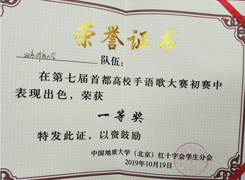 2019年10月19日,必威西汉姆联入口官网手语队来到中国地质大学参加第七届首都高校手语歌大赛初赛。我们的手语歌参赛曲目为《裂缝中的阳光》:“生命必须有裂缝,阳光才能照进来,不如就勇敢打破生命中的裂缝,阳光就逐渐洒满了其中”希望每个人在遇到困难时都能勇于克服,战胜自己,获得属于自己的阳光。最终我们获得第一名的好成绩成功晋级决赛。这样的好成绩离不开每一个成员的努力,即使遇到了很多困难,也不曾放弃。最后,希望我们在决赛能取得更好的成绩。