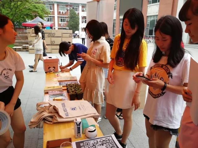 6月25-26日中午食堂门口红会爱心部举办了爱心捐书换绿植活动。
