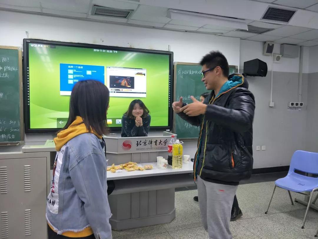活动开始前,同学们在手机上做了关于艾滋病的班前测,聆听讲师关于红十字会成立背景及标志的介绍。与一般课堂授课不同,YPE讲座注重互动性和体验性,参加讲座的同学们被分成六组,分别回答六个关于艾滋病的问题。