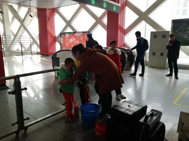 到南法信地铁站时听到有人呼唤,是学校生病的孩子去医院看到了熟悉的哥哥姐姐,地铁工作人员贴心的让姐姐过去安慰。