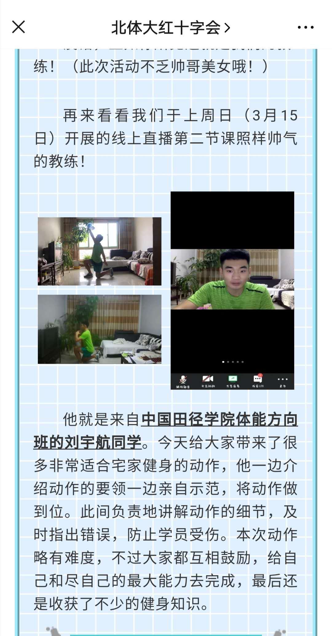 截止到3月23日,由必威西汉姆联入口官网红十字会学生分会公益体育部主办的“21天居家健身活动打卡”活动正式结束啦!现在,让我们回顾一下这个难忘的活动吧!