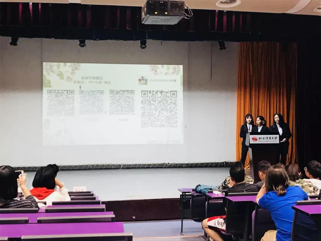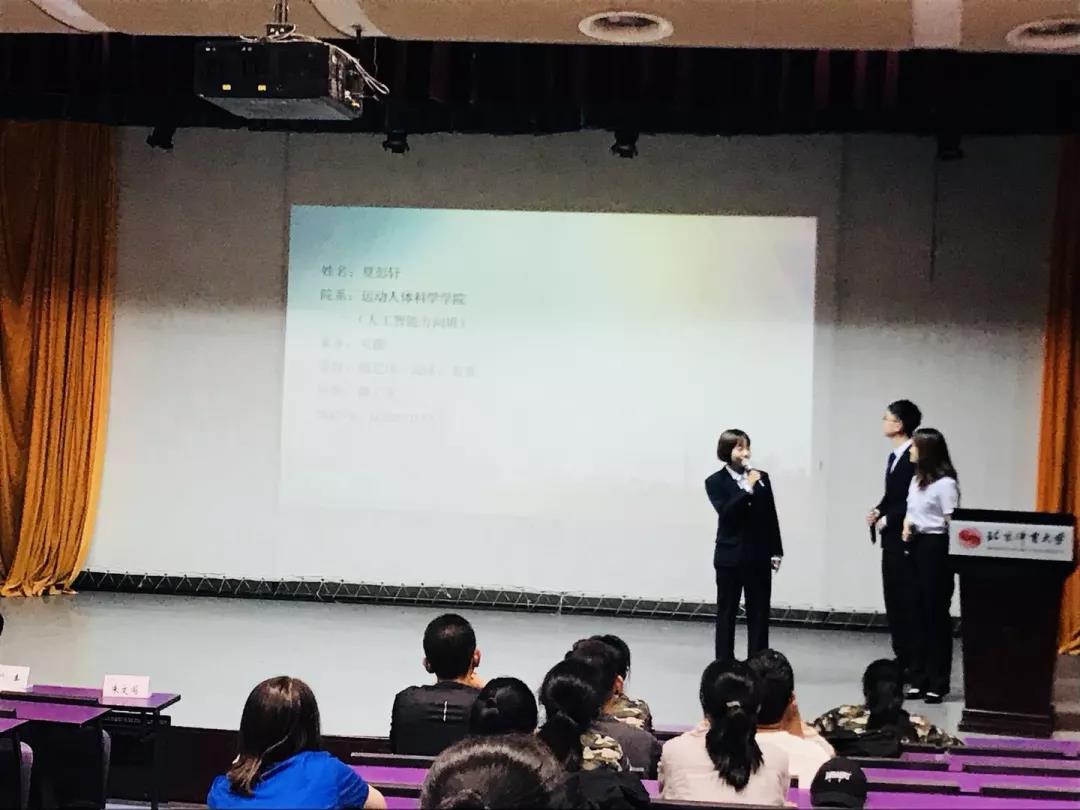最后一个环节是部长们的答疑环节,在主持人的引导下,同学们有秩序的提出问题,台上的部长耐心解答。需要强调的是,小红豆们只能选择红会的一个部门加入哦,但是很多活动都是可以一同参与的。最后,手语部部长教给大家“我爱北体大”的手语的表达,在热闹的气氛中,结束了此次招新宣讲会。