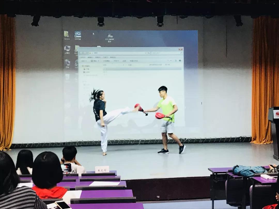 在公益体育部的宣讲开始之前,帅气的小哥哥小姐姐们分别表演了养生与跆拳道,引得台下阵阵掌声,现场气氛再次达到高潮。部长们以问答的方式向大家全方位的介绍了公体的活动,向心动的小红豆们讲述加入公体可以带来的收获。