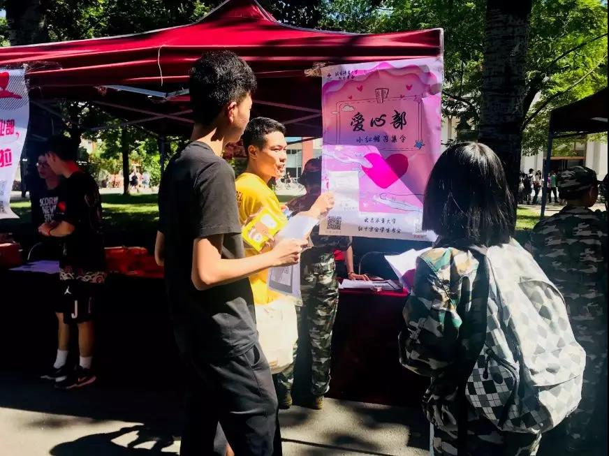 在面对小萌新的疑问时,各成员耐心地为小萌新门讲述部门工作、解答问题,很多小红豆们连连发问可不可以加入多个部门,得到否定的回答后表示十分遗憾。在各个部门的摊子前排满了充满爱心的小红豆们,大家积极踊跃报名,仔细地填写简历。有的部门甚至还吸引了外国的小哥哥~