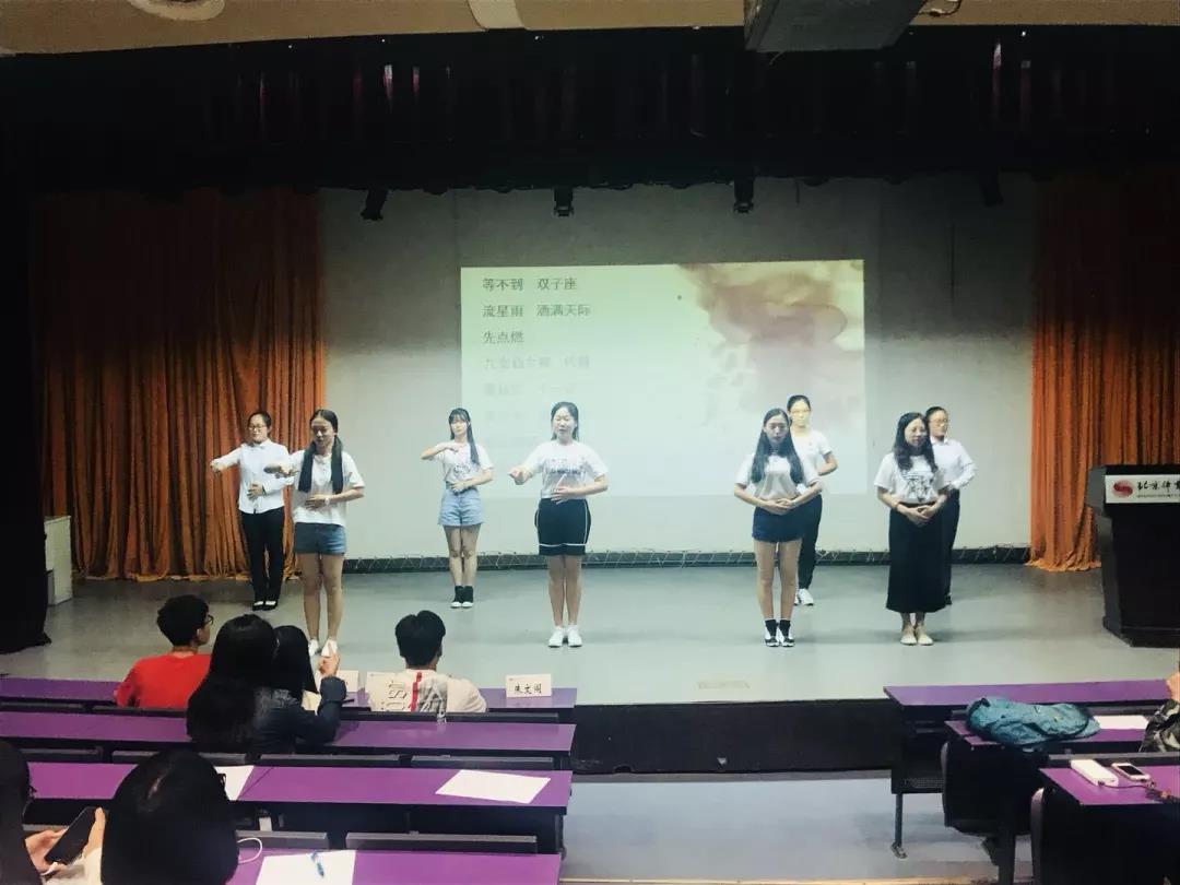 最后一个宣讲的部门是手语部。手语部以手语表演《心愿便利贴》开场,以北体校训“追求卓越”结束,现场的小红豆们纷纷举起双手学习起来。部长们在简单的自我介绍之后,讲述了手语部的日常课程、活动和获得的荣誉,台下掌声不断。