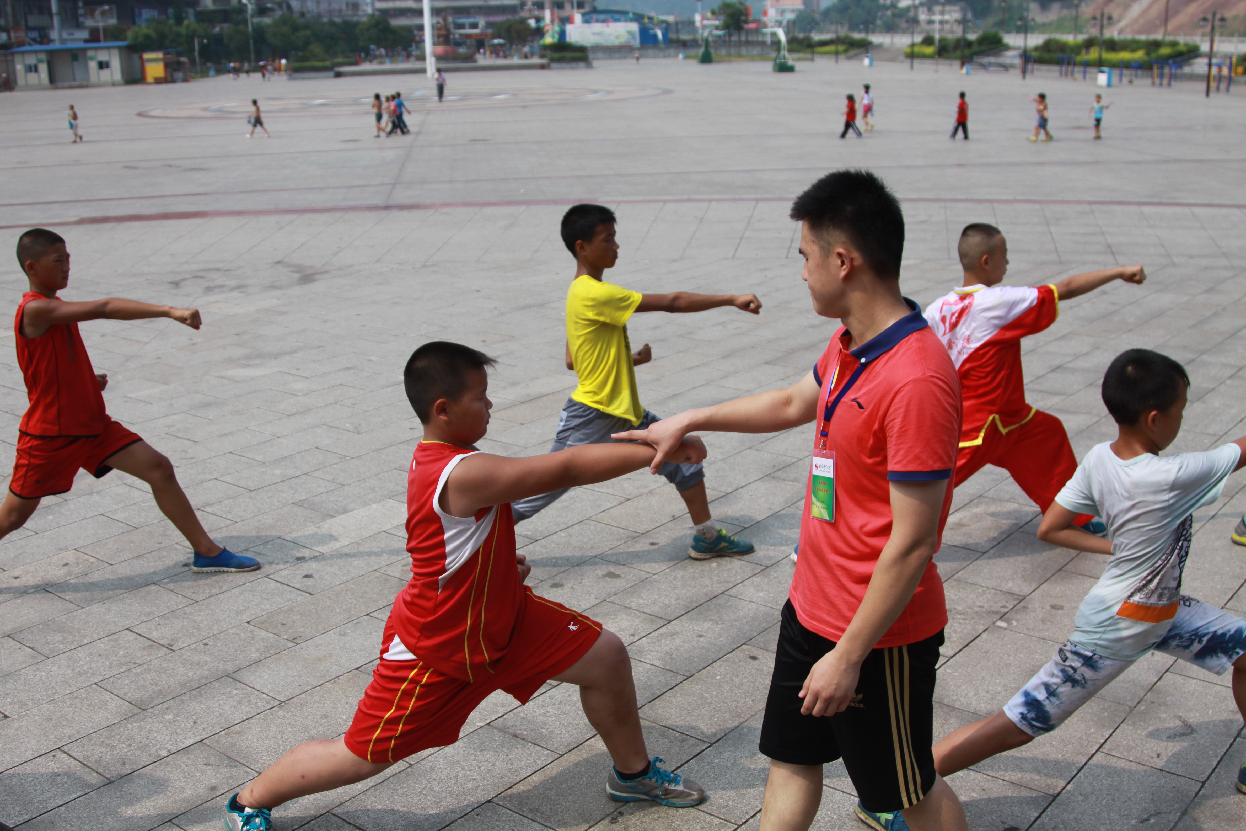 志愿者在大爱武校教授武术