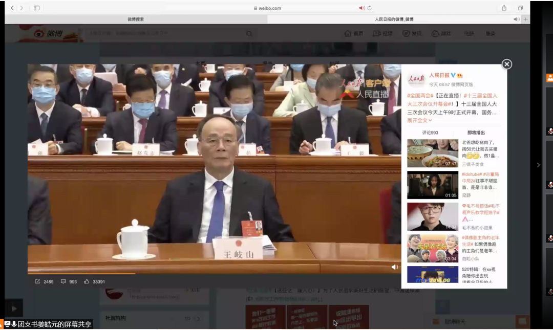 人文学院2018级二班通过腾讯会议组织学习2020年全国两会精神。