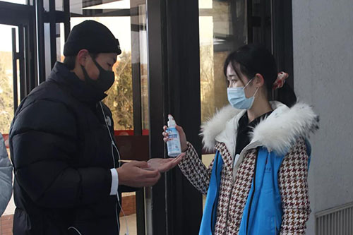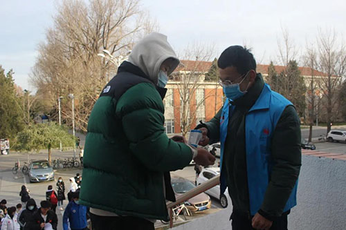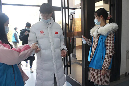 所有线下观众以团支部为单位统一组织,由团干部带队,实名对号隔位入座。现场安排校院两级学生骨干,在门口进行体温检测,并使用手部消毒液为每一名同学进行手部消杀。比赛过程中,在观众席设置志愿者进行疫情防控的宣传引导,提醒所有观众全程佩戴好口罩,确保比赛在安全的前提下顺利开展。