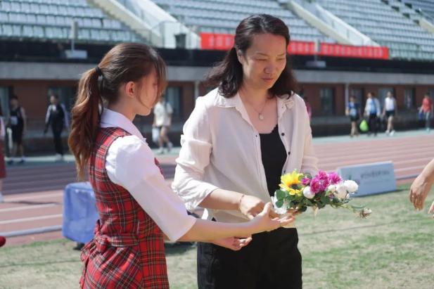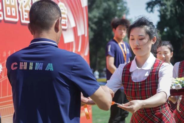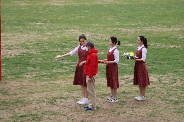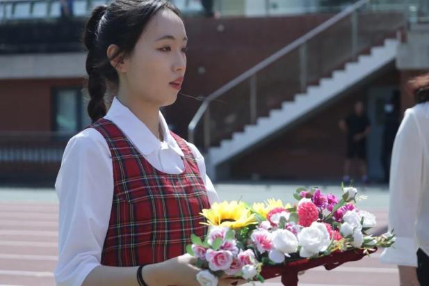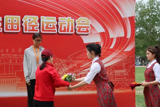 礼仪志愿者时刻保持着大方的仪态和积极向上的精神面貌,以一丝不苟的态度对待着每一次颁奖。整齐的步伐,统一的手势,为运动会增添了一抹青春的亮色。