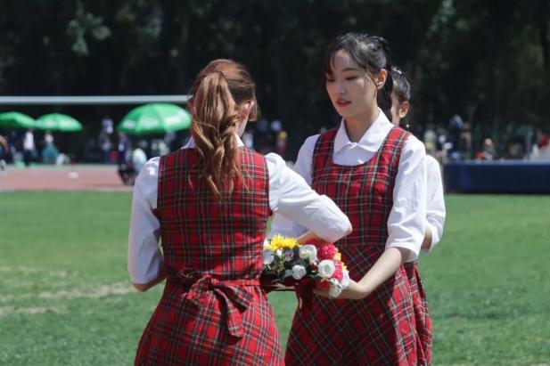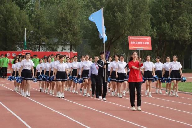 款步姗姗,盈盈细步。引导员们身着红衣,高举引导牌,带领着各个方阵向主席台走来,她们展现了来自北体的昂扬气质,成为运动场上一道靓丽的风景线。