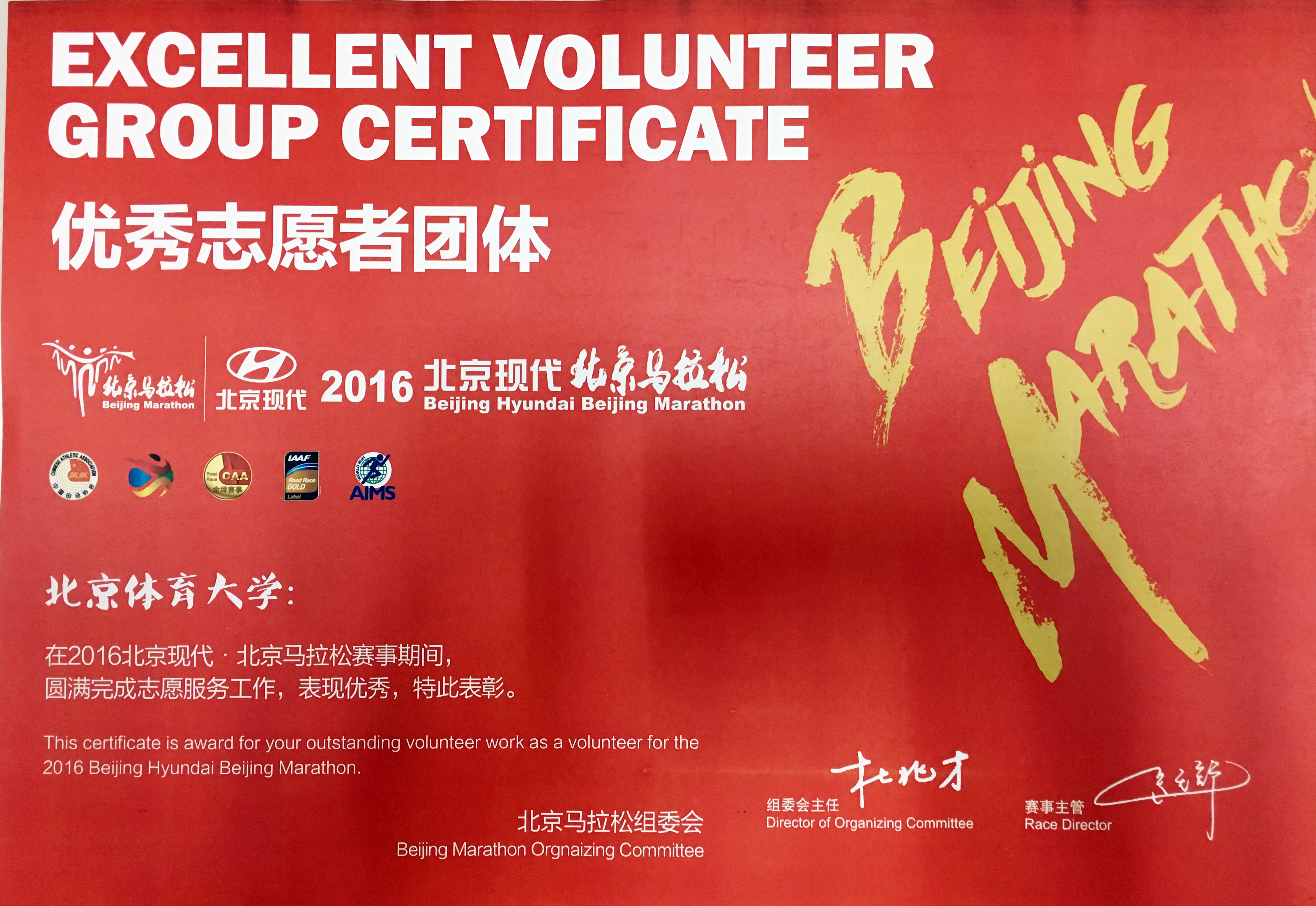 喜报:我校荣获北京马拉松“志愿者优秀团体”荣誉称号
