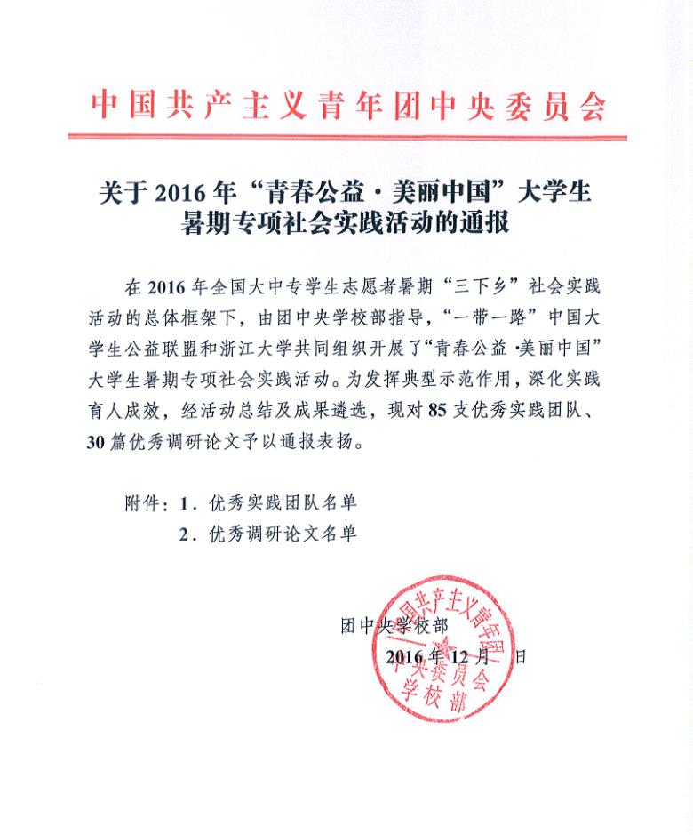 喜报:我校山西省繁峙县、代县精准扶贫实践团荣获2016年“青春公益·美丽中国”大学生暑期专项社会实践活动“优秀实践团队”荣誉称号