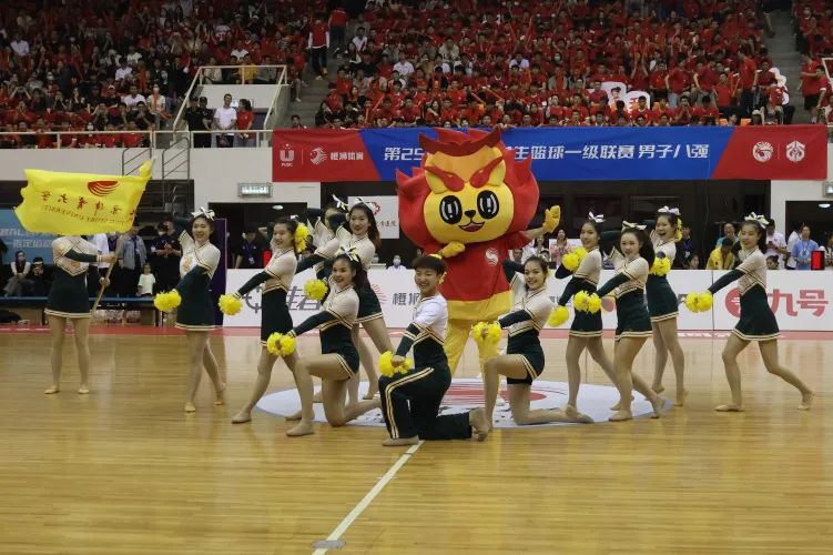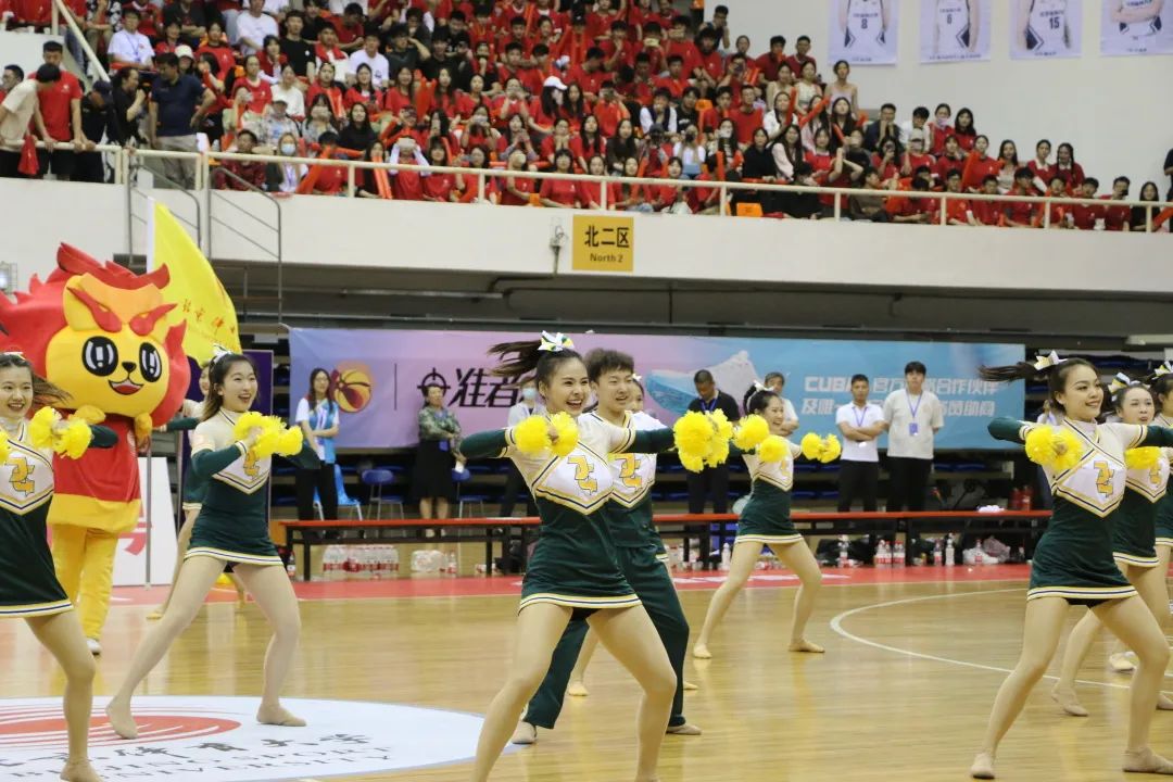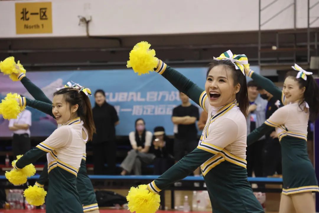 中场休息期间,啦啦操队员们身穿白色上衣,绿色短裙,手拿黄色花球为大家带来了精彩的啦啦操表演,北体小火狮穿梭于其中,与观众热情挥手互动。啦啦操队员们凭借朝气蓬勃、健康向上的精神风貌给大家留下了深刻的印象,也再次点燃了全场观众的热情,尽展青春之姿。