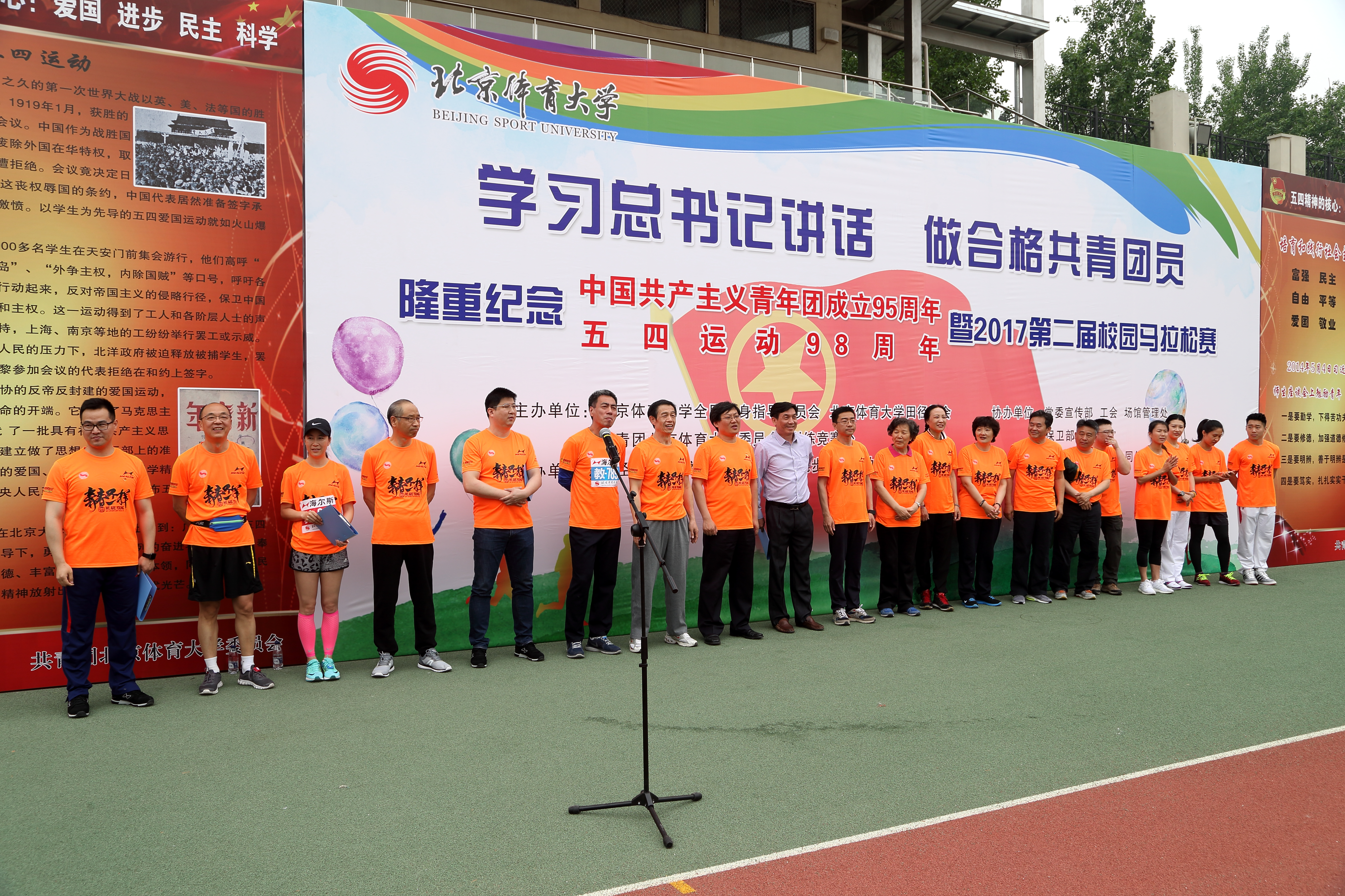 五月的阳光和煦温暖,五月的校园青葱可人,五月的青年朝气蓬勃。5月3日上午10点,由必威西汉姆联入口官网全民健身指导委员会、必威西汉姆联入口官网田径协会、共青团必威西汉姆联入口官网委员会、训练竞赛处主办;田径教研室、社团管理委员会、跑步爱好者协会承办的“学习总书记讲话,做合格共青团员”暨2017第二届校园马拉松赛在英东田径场拉开帷幕,隆重纪念五四运动98周年,同时,为中国共产主义青年团95岁生日献礼。