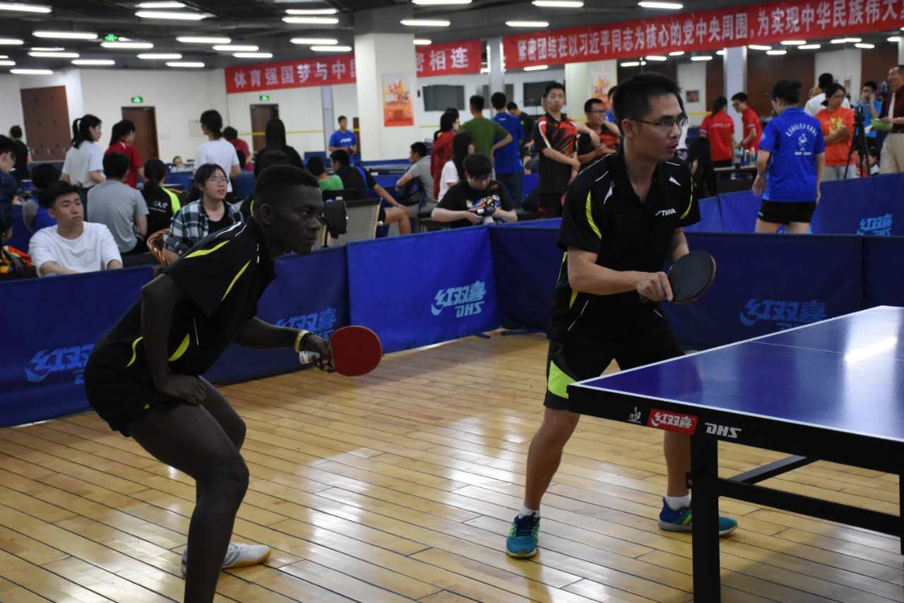 第一场男子单打,来自教育学院的王小榕虽然保持了稳定的发挥,但依然不敌对手。第二场女子单打,我校教育学院研究生徐晓阳凭借不俗的实力和灵活多变的球路轻取对手,将比分扳平。第三场我校派出了由越南留学生阮刻药和来自贝宁的Olabiyi组成的“国际组合”,焦灼的比赛和两人默契的配合引得台下观众连连喝彩,最终二人顶住压力再下一城。女双则由来自教育学院的研究生卢永妍和来自康复系的吴明璇组成,最终两人因比赛经验相对不足,惜败对手。在混双比赛中,教育学院研究生蒲静、宋桥始终坚守阵地,一度将比赛拖入第五局,最终战胜劲敌北京大学,晋级四强。