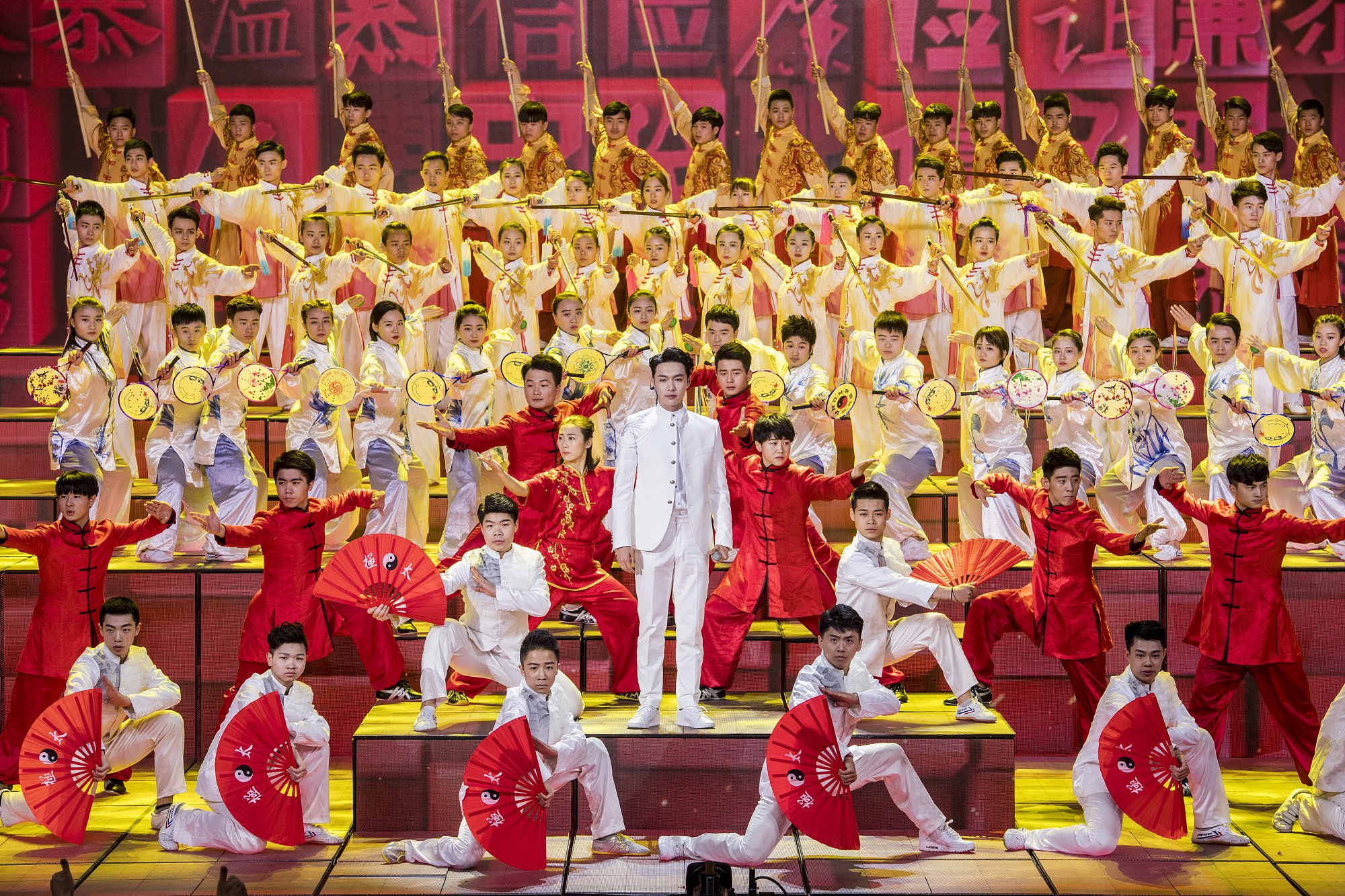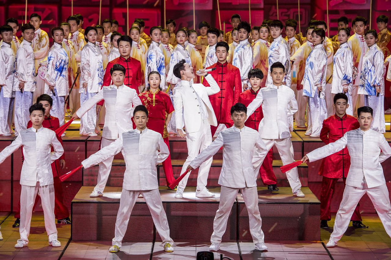 备受瞩目的青年演员张艺兴带来的歌曲《精忠报国》,大学生武术冠军的表演也为这个节目增色不少;歌舞节目《当那一天来临》唱响了改革强军进行曲,“海陆空三军国防生”、“火箭军国防生”、“战略支援部队国防生”纷纷亮相,在雄浑嘹亮的歌声中显露飒爽英姿。
