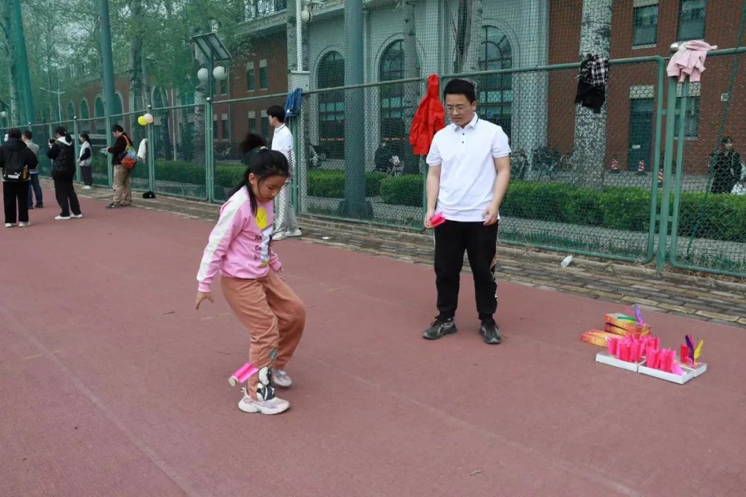 在志愿者的帮助下,活动进行有条不紊,北大附小的学生及家长们积极投入其中,运动体验简单有趣,现场气氛火热。项目体验活动将健康向上的大众体育精神传达给在场的同学及家长。