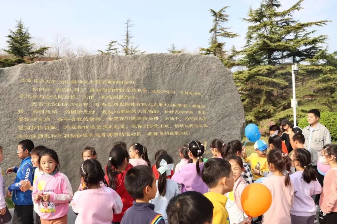 在全民健身活动体验完毕后,志愿者们带领同学及家长们由西田径场到田径馆、大鹏馆、网球馆、游泳馆,参观欣赏校园多样的体育场馆和春日美景。