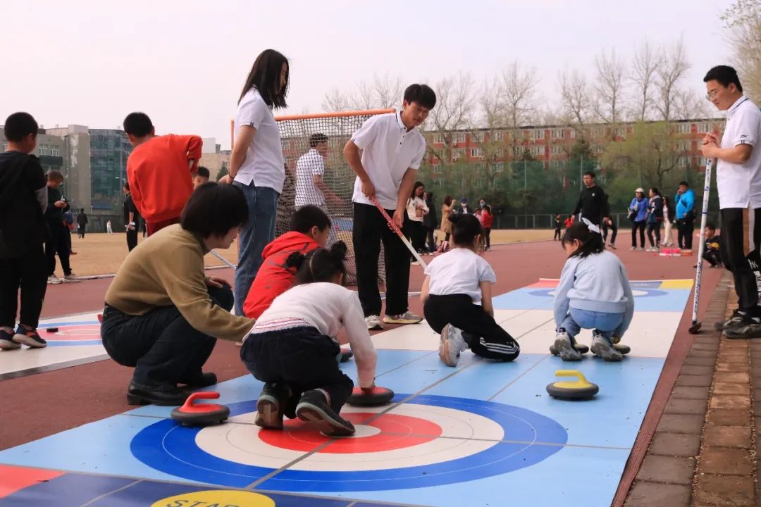 4月5日下午,在必威西汉姆联入口官网西田径场的全民健身项目体验区,设置了冰雪项目、扔沙包、飞盘、踢键子、跳皮筋、跳大绳、夹气球跑等趣味活动,北体特色社团及志愿者为前来体验的学生们提供了专业指导,让学生们感受到了运动的乐趣。