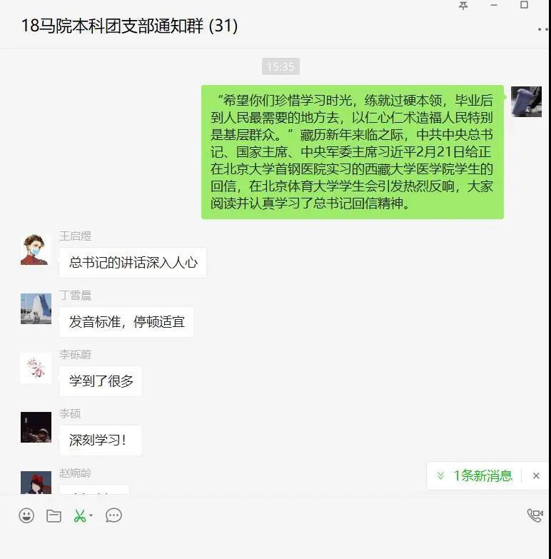 北体团学青年学习习近平给在首钢医院实习的西藏大学医学院学生的回信