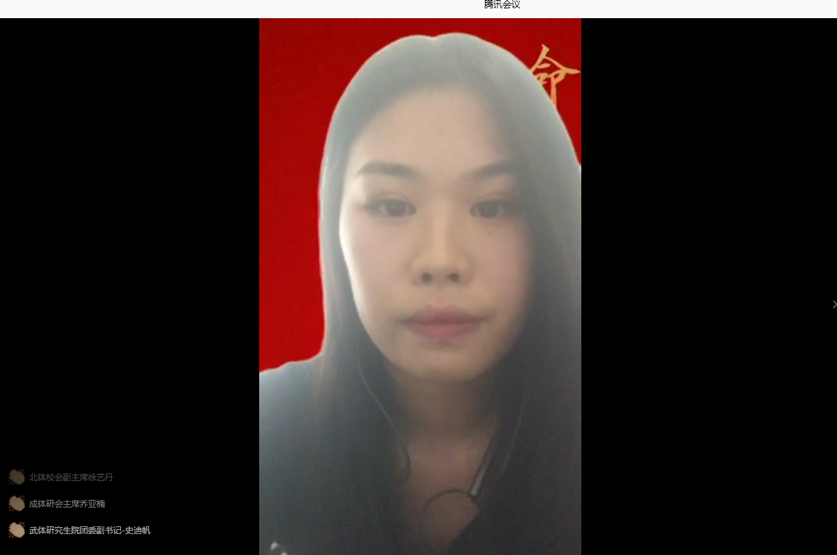 2020年是决胜全面建成小康社会、决战脱贫攻坚之年,也是“十三五”规划收官之年。为深入学习践行习近平总书记给我校2016级研究生冠军班重要回信精神,进一步激发全校团员青年的责任感使命感,6月18日上午10:00,团委举办“使命在肩、奋斗有我”学习践行习近平总书记回信精神线上主题团日活动。全国12所体育院校学生代表、研究生冠军班代表、各学院团总支书记、学生骨干“云端”相聚。
