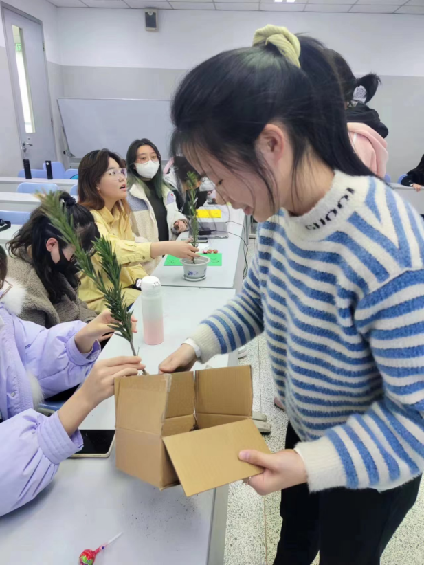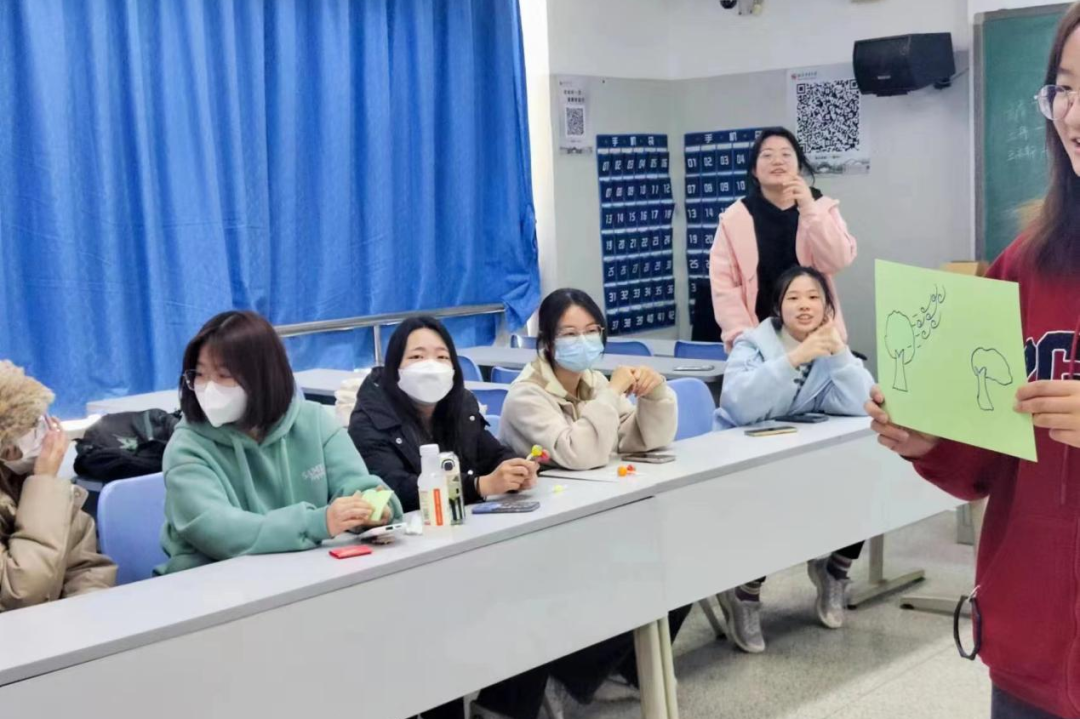 体育休闲与旅游学院团总支组织开展了植树主题“你画我猜”游戏,筹办了小型育树仪式。