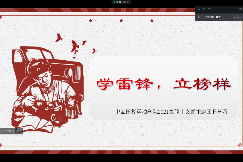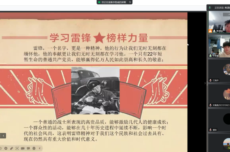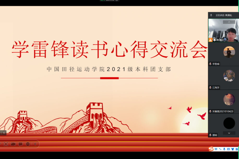 中国田径运动学院团总支组织团员青年进行线上学习雷锋心得交流会。
