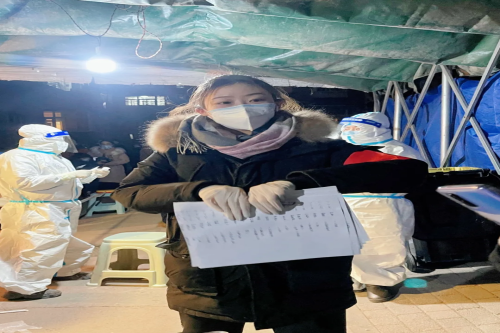 在全市全员核酸检测前,我积极帮助居委会收集小区核酸检测所需的个人信息。天气寒冷,但一想到我是在为社区出力,为抗击疫情做贡献,我就有了不竭的动力。居民们一声声的感谢与赞扬更让我感到有一股暖流在心中流淌。