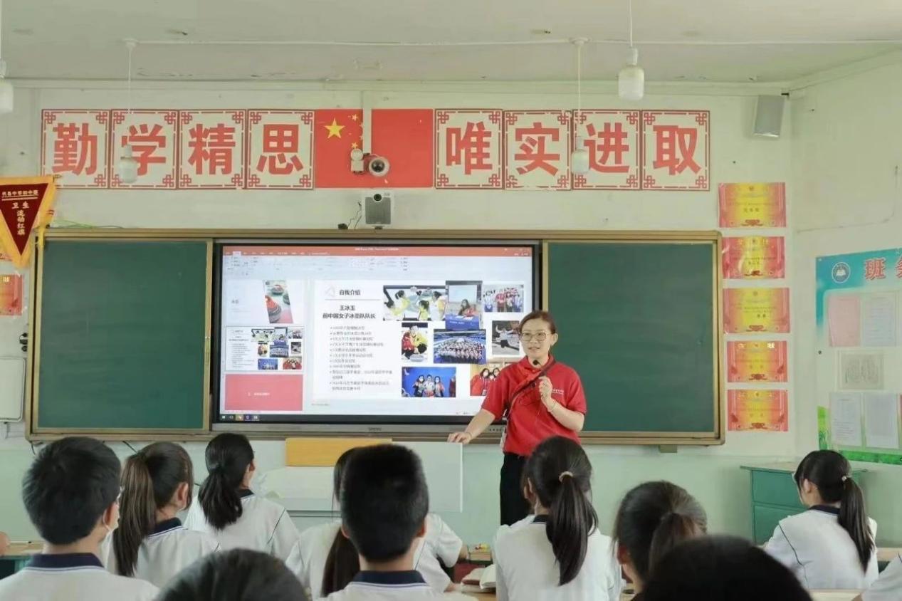 我校奥运冠军、世界冠军陈中老师、侴陶老师、王冰玉老师为同学们讲述了他们在赛场上奋力拼搏、为国争光的故事,为中华民族伟大复兴汇聚磅礴的精神力量。