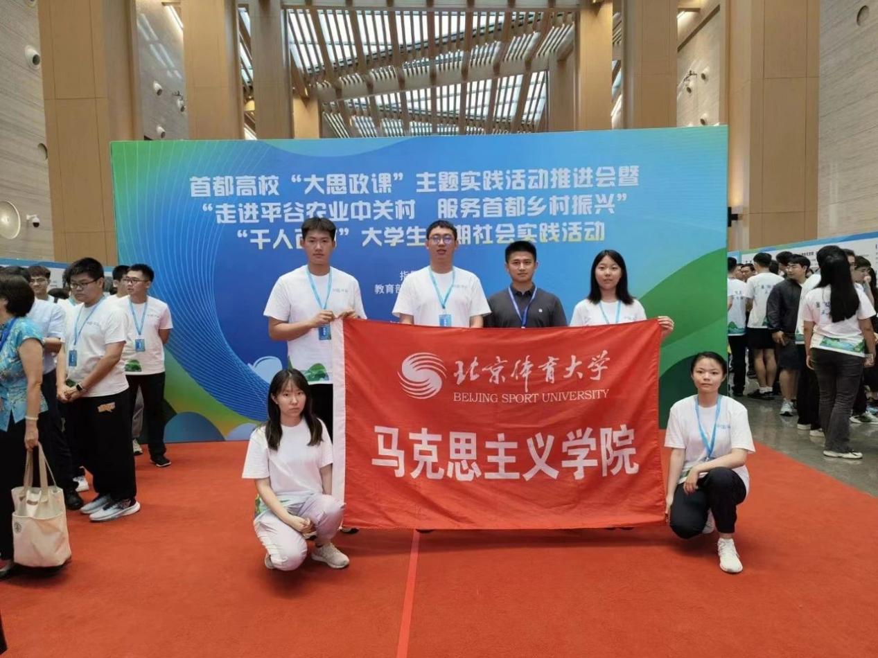 我校同学在习近平总书记给我校2016级研究生冠军班重要回信精神的指导下,积极参与各项社会实践活动,以实际行动为乡村振兴战略尽青年青春力量。7月13日,首都高校“大思政课”主题实践活动推进会暨“走进平谷农业中关村 服务首都乡村振兴”“千人百村”大学生暑期社会实践活动启动仪式在北京金海湖国际会展中心举行。我校体育商学院、体育休闲与旅游学院、马克思主义学院的3支团队参与了“千人百村”大学生暑期社会实践活动。