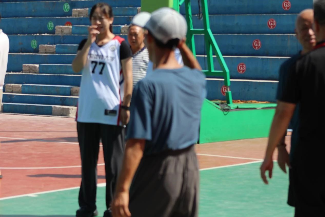 调研期间,实践队遇到了一大批从外地来慕名参观球场的游客,在与其亲切交流之后,这批游客自行组队,和实践队进行了一场篮球友谊赛。在这场友谊赛中,无论男女老少都积极参与其中,所有人都积极地跑动投篮,无时不刻不洋溢着全民健身的体育之风。赛后,实践队为大众分发了数册由自己设计的篮球知识宣传手册,大家伙给予了高度评价,并和实践队合照。