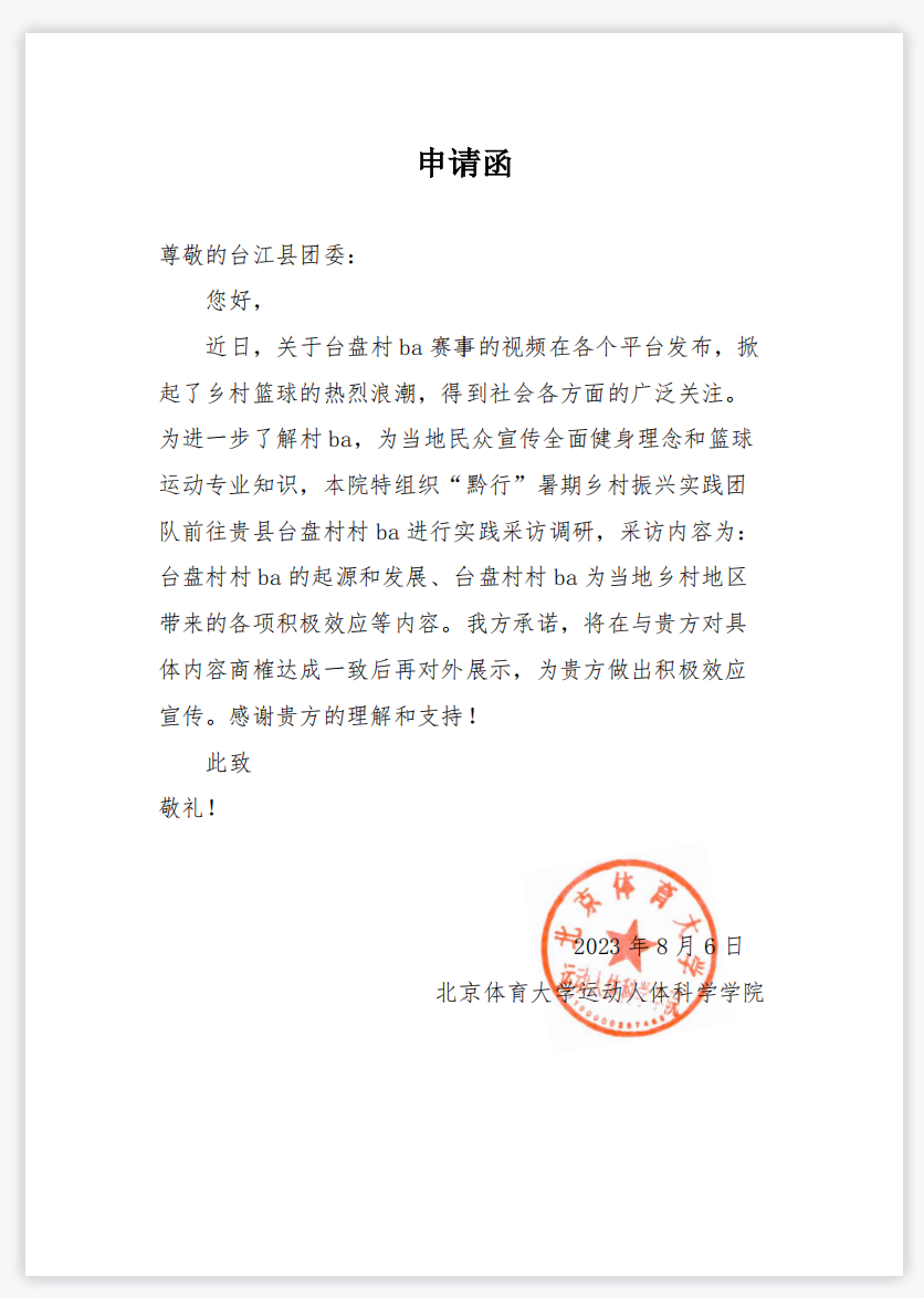 台盘村村BA采访申请函