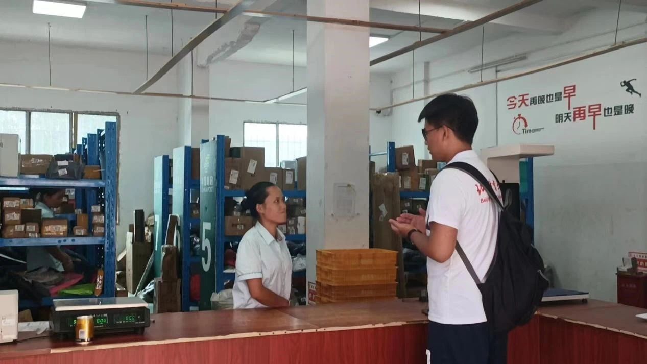 “黔行”实践队成员罗维远采访当地快递站员工
