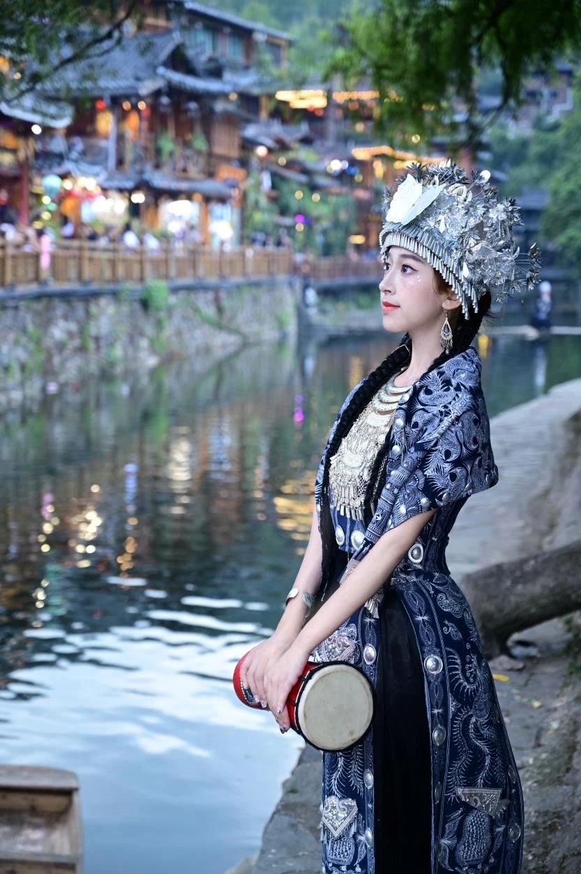 “黔行”实践队成员赵婉淇体验民族服饰变装
