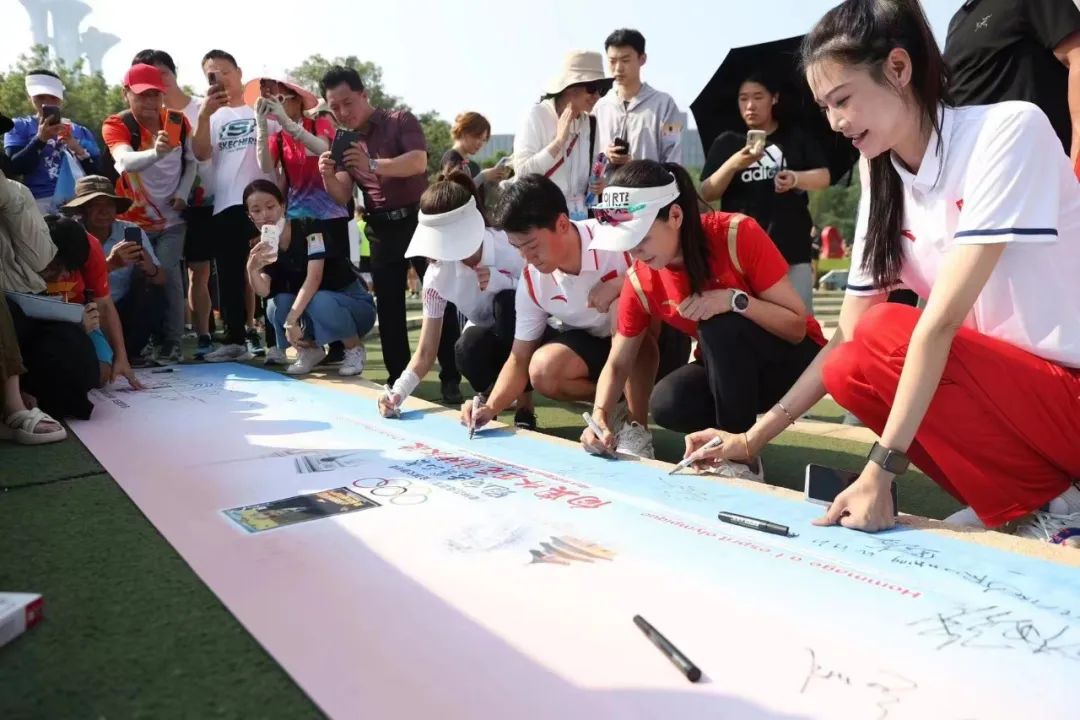 竞走奥运冠军王丽萍、男子蹦床冠军董栋、艺术体操奥运亚军侴陶、中国女子篮球运动员许诺出席本次活动。
