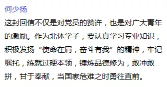 习近平总书记的回信饱含深情、字字暖心、立意深切、催人奋进,北体青年将继续勇担青春应有的责任,以“使命在肩 奋斗有我”的精神,为打赢疫情防控阻击战汇聚青春力量,用实际行动诠释初心与使命,在祖国最需要的地方谱写青春之歌!
