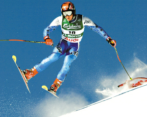 跳台滑雪利用自然山形建成的跳台进行。脚着专用滑雪板,不借助任何外力,从起滑台起滑,在助滑道上获得高速度,于台端飞出后,身体前倾与滑雪板成锐角,沿抛物线在空中飞行,在着陆坡着陆后,继续滑行至停止区停止。