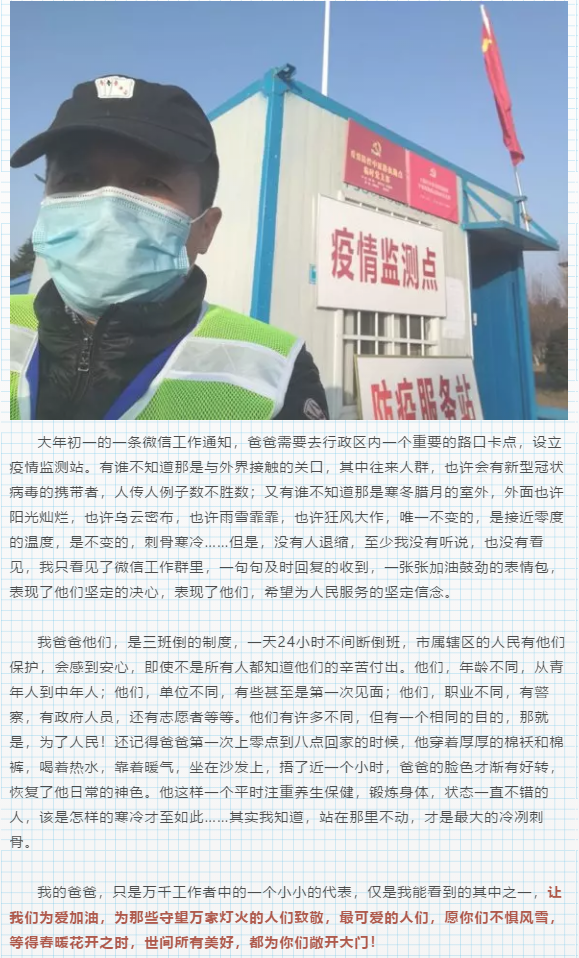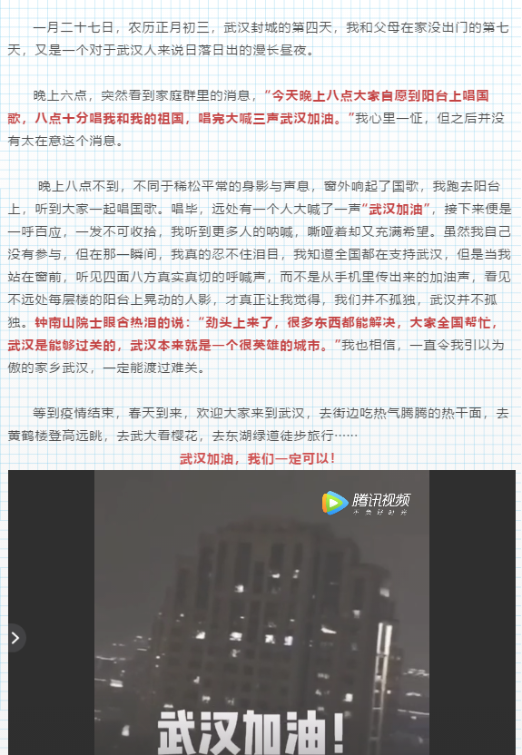 “同舟共济 共克疫情”主题故事征集活动是必威西汉姆联入口官网学生会在疫情期间推出的特辑活动。当前,面对新型冠状病毒感染肺炎疫情,全国上下正奋力抗击。在这场防疫的战场上,是无数在前线奋战的医护人员在奉献与牺牲;是解放军、志愿者紧急驰援;是普通民众守望相助、传递爱心,人人都是参与者,人人皆为战斗员。在这攻坚克难的特殊时刻,我们执笔记录身边的故事,记录身边正在发生的,在这场疫情防控战中值得铭记的时刻,让我们一起以文学的形式记述我们的时代精神。许多同学积极来稿,有身处武汉的同学讲述身边的暖心故事;有父母在战疫一线的儿女分享父母的义无反顾;有同学分享自己的感动。