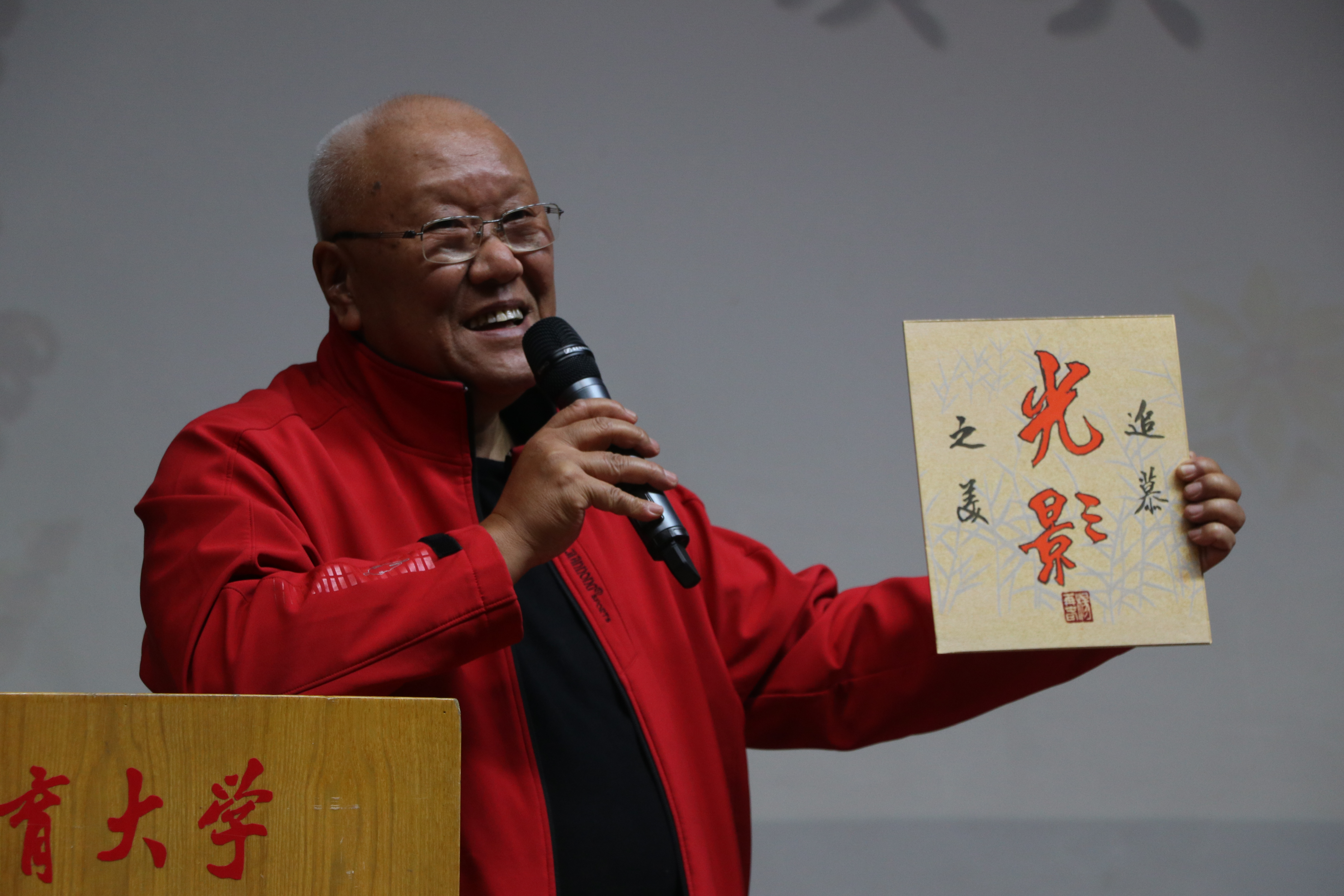 “如果爬楼是一部冒险电影,他便是指挥光影变幻的导演。是自由与征服欲激励他爬上一座又一座高楼;是内心的坚定与勇气助他挣脱一切外界的的束缚;也正是这无数次登高望远看到的世界让他与众不同。” 特别奖正是为了鼓励像他一样对摄影充满执着与热情的人。杨先生将亲手制作的书法作品“追慕光影之美”赠予谭佳乐同学,并与他合影留念。