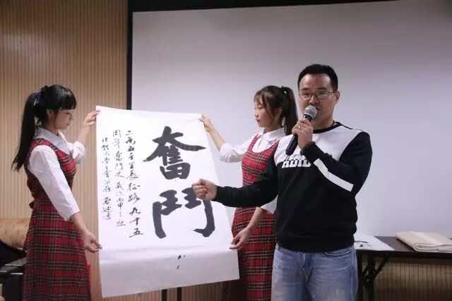 同学们也勇敢走上台,一展书法功底。见到此景,周启迪老师起了兴致,笔墨一挥,写下“奋斗”二字,并题“两万五千里长征路,九十五周年奋斗史”,希望同学们可以以此勉励自己