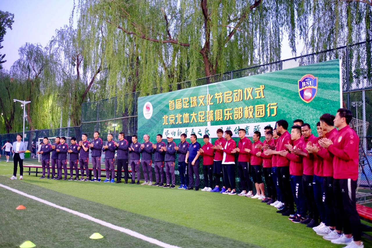 为深入贯彻落实习近平总书记关于体育的重要论述精神,加快推进体育强国建设,促进足球运动更好更快发展,营造青春阳光的足球文化氛围,使青年学生全方位的参与到足球运动中来,5月20日19:30在1号足球场,我校举办“唱响新青春之歌圆梦体育强国”首届足球文化节启动仪式--北京北体大足球俱乐部校园行,邀请职业球员与学生面对面,培育校园足球文化氛围,增强学生与球队的归属感和认同感,共话足球情怀,共享足球乐趣。