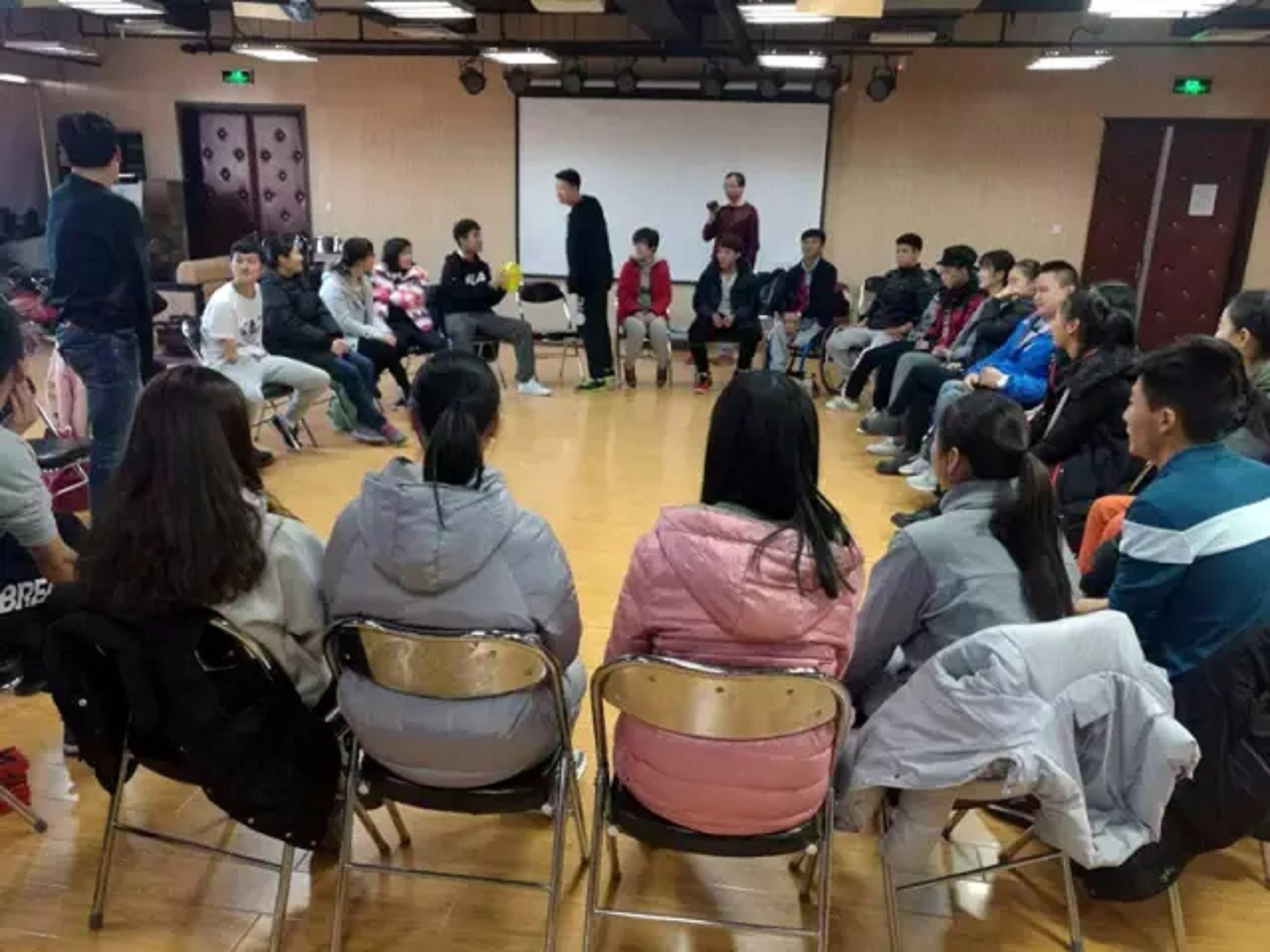 之后,大家分成了两组一起玩“狼人杀”。在两位“上帝”的带领下,游戏有条不紊的进行着。在这个环节中,涌现出了几位影帝级的人物,真的是很费脑筋呀。